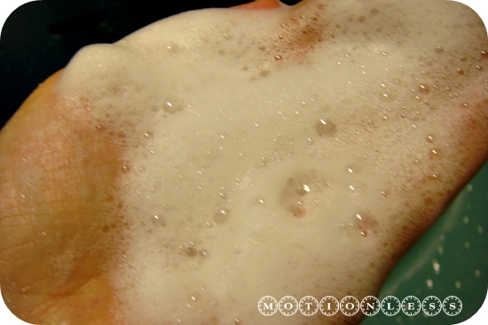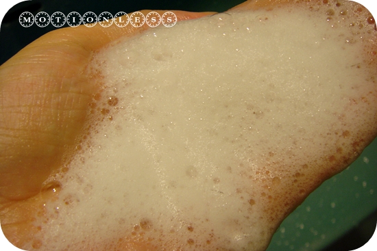 手上的泡沫大概只是總量的1/3-1/4吧,在打濕的髮絲上滿容易就搓出泡沫來
