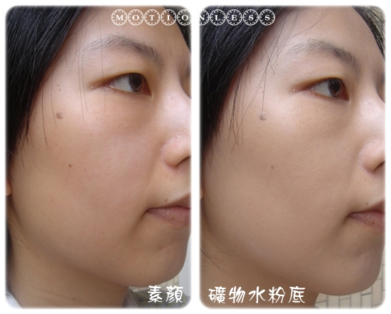 一開始,礦物水粉底的質地讓我想到MUF水粉霜的凝凍感
