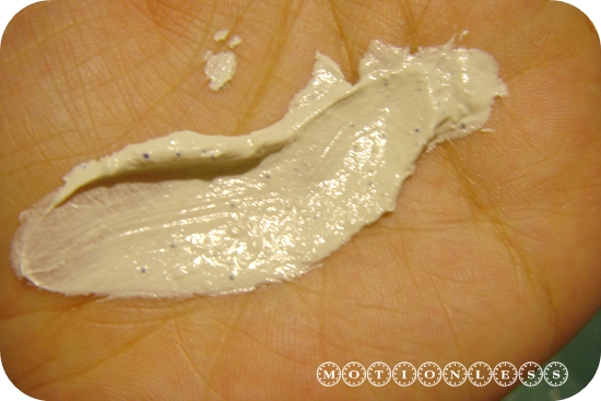 滑順的膠泥中有一顆顆為數不多的藍色微粒,除了潔面之外也有一些去角質的能力